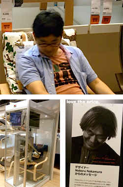 焼きそばみたいな名前ですが、体の曲線に合わせた1人用チェアです。座るとびっくり、揺りかごに揺られているような、ブランコに揺られているような、SLの揺れる椅子のような、なんとも落ち着く揺れがたまりません。