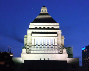 帰路、車窓から眺めた、国会議事堂、ガスタンクが何となく古墳時代のものに見えた。